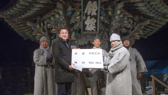Å뿵 ¿ëÈ»ç(ÁÖÁö Á¾¹¬½º´Ô)´Â Áö³´Þ 31ÀÏ ÇÑÇØ¸¦ ¸¶¹«¸® Çϰí Èñ¸ÁÂù »õÇØ¸¦ ¸ÂÀÌÇÏ¸é¼ ºÒ¿ìÀÌ¿ôµ½±â ¼º±Ý 500¸¸¿ø°ú ¹é¹Ì(10kg) 100Æ÷¸¦ Å뿵½Ã¿¡ ±âŹÇß´Ù. À̳¯ ±âŹÇÑ ¼º±Ý ¹× ¼ºÇ°Àº ¿ëÈ»ç¿Í Å뿵ºÒ±³½ÅÇà´Üü¿¬ÇÕȸ, Å뿵ºÒ±³»ç¾Ï¿¬ÇÕȸ¿¡¼ ºÒ¿ìÀÌ¿ôµ½±â ¼º±Ý¸¶·Ã »õÇØ¸ÂÀÌ ¼Ò¸Áµî ´Þ±â ¹× Á¦¾ßÀÇ Á¾ ŸÁ¾½Ä Çà»ç¿¡ Âü¿©ÇÑ ½º´Ô ¹× ½ÅµµµéÀÌ Á¤¼ºÀ» ¸ð¾Æ ¸¶·ÃµÈ °ÍÀÌ´Ù.