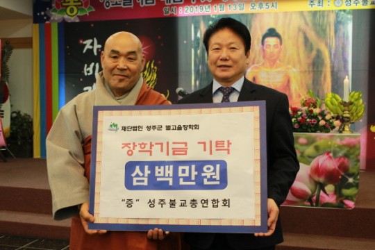 ¡Þ ¼ºÁÖºÒ±³ÃÑ¿¬ÇÕȸÀå Á¤µµ ½º´ÔÀÌ À̺´È¯ ¼ºÁÖ±º¼ö¿¡°Ô º°°íÀ» ÀåÇÐ±Ý 3¹é¸¸¿øÀ» Àü´ÞÇϰí ÀÖ´Ù. (¼ºÁÖÀÎÅͳݴº½º Á¦°ø).