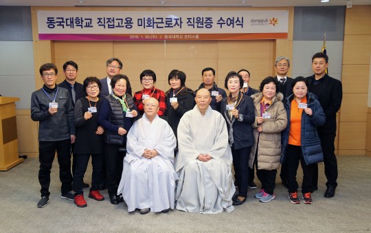 ±¹³» »ç¸³´ëÇÐÀÌ ¿ë¿ª¾÷ü û¼Ò³ëµ¿±Ù·ÎÀÚµéÀ» ´ë±Ô¸ð·Î Á÷Á¢ °í¿ëÇÑ »ç·Ê°¡ Àû¾ú´ø ¸¸Å, ¾ÕÀ¸·Î µ¿±¹´ëÀÇ Á÷Á¢°í¿ë »ç·Ê°¡ ¸ð¹üÀÌ µÉ Àü¸ÁÀÌ´Ù. µ¿±¹´ë´Â 1¿ù 30ÀÏ µ¿±¹´ë ·ÎÅͽºÈ¦¿¡¼ Á÷Á¢ °í¿ë Àüȯ û¼Ò³ëµ¿ÀÚµéÀ» ´ë»óÀ¸·Î Á÷¿øÁõ ¼ö¿©½Ä Çà»ç¸¦ ÁøÇàÇß´Ù.