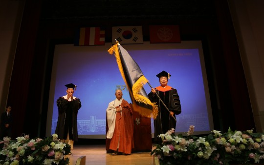 µ¿±¹´ëÇб³´Â 2¿ù 28ÀÏ º»°ü Áß°´ç¿¡¼ 'Á¦18´ë ÇѺ¸±¤ ÃÑÀåÀÇ ÀÌÀӽİú Á¦19´ë À±¼ºÀÌ ÃÑÀåÀÇ ÃëÀÓ½Ä'À» °³ÃÖÇß´Ù. À̳¯ Çà»ç¿¡´Â ´ëÇѺұ³Á¶°èÁ¾ Ãѹ«¿øÀå ¿øÇà ½º´Ô, ÁÖÈ£¿µ ±¹È¸ÀÇ¿ø, Áö»ó¿í ±¹È¸ÀÇ¿ø, ¹ÚÇÑö Àü Çå¹ýÀçÆÇ¼ÒÀå µî Á¾±³°è ¹× Á¤Àç°è Àλçµé°ú Çб³ °ü°èÀÚ µî 1000¿© ¸íÀÌ Âü¼®Çß´Ù.