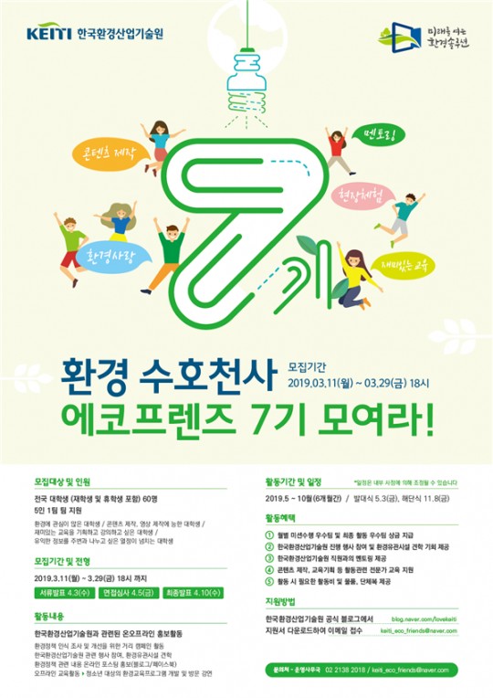 Çѱ¹È¯°æ»ê¾÷±â¼ú¿ø(¿øÀå ³²±¤Èñ)Àº ´Ù¾çÇÑ È¯°æ ºÐ¾ß Á¦µµ¸¦ ±¹¹Î¿¡°Ô Ä£¼÷ÇÏ°Ô ¾È³»Çϱâ À§ÇÑ ´ëÇлý ȯ°æÁ¤Ã¥ ¾Ë¸²ÀÌ ‘7±â ¿¡ÄÚÇÁ·»Áî ¼Æ÷ÅÍÁî’¸¦ 3¿ù 29ÀϱîÁö ¸ðÁýÇÑ´Ù.