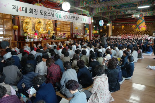 4´ë ȸÀå µµÈ« ½º´Ô(â¿ø ºÒ°î»ç ÁÖÁö)Àº ÀÌÀӻ縦 ÅëÇØ “Áö³ 4³â°£ ¼ÒÅë°ú ÈÇÕÀ» ¿øÄ¢À¸·Î ÃÖ¼±ÀÇ ³ë·ÂÀ» ´ÙÇßÀ¸³ª ¼º¿ø¿¡ ¹ÌÄ¡Áö ¸øÇÏ´Â °á°ú¿¡ ¸¹Àº ¾Æ½¬¿òÀÌ ³²´Â´Ù”¸ç ¹°½É¾ç¸éÀ¸·Î µµ¿ò ÁØ ¿ø·Î´ë´ö½º´Ô°ú °¢ »ç¾Ï ÁÖÁö ½º´Ô, ºÒ±³ ½ÅÇà´Üü ÀÓ¿øÁøµé¿¡°Ô °¨»çÀÇ Àλ縦 ÀüÇß´Ù.
