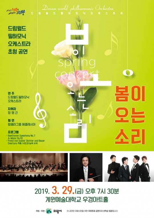 ÀǿսÃ(½ÃÀå ±è»óµ·)´Â ´Ù°¡¿À´Â º½À» ¸Â¾Æ ¿À´Â 29ÀÏ ¿ÀÈÄ 7½Ã 30ºÐ °è¿ø¿¹¼ú´ëÇб³ ¿ì°æ¾ÆÆ®È¦¿¡¼ µå¸²¿ùµåÇÊÇϸð´Ð ¿ÀÄɽºÆ®¶ó¿Í ÇÔ²²ÇÏ´Â ¿ÀÄɽºÆ®¶ó ÃÊû°ø¿¬ ‘º½ÀÌ ¿À´Â ¼Ò¸®’¸¦ °³ÃÖÇÑ´Ù.