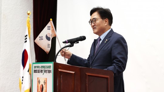 ¡ã¿ì¿ø½Ä ±¹È¸ÀÇÀåÀÌ 14ÀÏ(¼ö) ±¹¸³´ëÀüÇöÃæ¿ø¿¡¼ ¿¸° '±¤º¹ 79ÁÖ³â ¹× È«¹üµµ À屺 ±Íȯ 3Áֳ⠱â³ä½Ä'¿¡¼