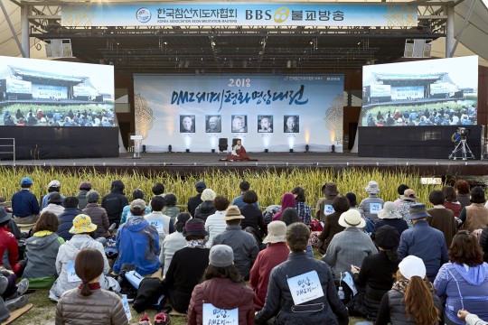 »çºÎ´ëÁßÀº ¼¼°èÆòȸ¦ ȵηΠ¸ö°ú Á¤½ÅÀ» ÁýÁßÇØ ¸¶À½ÀÇ ¾ÈÁ¤À» ã´Â ¸í»ó ¼öÇàÀ» À̾´Ù. ÆòÈ´©¸® °ø¿ø¿¡ ¾É¾Æ 5,000¸íÀÌ Á¼± ½ÇÂü ÇÏ´Â ¸ð½ÀÀº º¸±â µå¹® Àå°üÀ̾ú´Ù. ÀÌÈÄ DMZ 6.5Km ±¸°£À» ÇѹݵµÀÇ ÆòȰ¡ ±êµé±â¸¦ ±â¿øÇÏ¸ç Æ÷Çà ÇÏ¿´´Ù. Âü°¡ÀÚµéÀº ÇÑÁÙ·Î ¼¼ ±ºÅëÁ¦±¸¿ªÀÎ ÀÓÁø°º¯ »ýŠ޹æ·Î¸¦ 2½Ã°£ ¹Ý µ¿¾È °ÉÀ¸¸é¼ ºÐ´ÜÀÇ ¾ÆÇÄÀÌ ¹è¾îÀÖ´Â DMZ¿¡ ÆòȰ¡ Á¤ÂøµÇ±â¸¦ ¹ß¿øÇß´Ù.