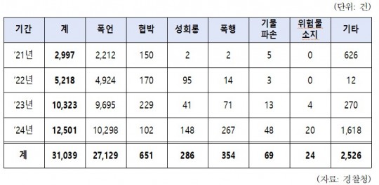 - À§¹ýÇàÀ§ µ¿¹ÝµÈ ¾Ç¼º ¹Î¿ø `21³â 2,997°Ç¿¡¼ `24³â 12,501°ÇÀ¸·Î ±ÞÁõ