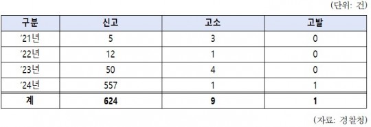 À§¹ýÇàÀ§¿¡ ´ëÇÑ Á¶Ä¡ °Ç¼öµµ 2021³â 5°Ç¿¡¼ 2024³â 557°ÇÀ¸·Î Å©°Ô ´Ã¾ú°í, °í¼Ò¤ý°í¹ßµµ Áö³ 4³â°£ ÃÑ 10°Ç ¹ß»ýÇß´Ù. ÀÌ¿Ü ´ëºÎºÐ »ç°ÇÀº Åð°Å µî ÇöÀå Á¶Ä¡·Î Á¾°áµÈ °ÍÀ¸·Î ¾Ë·ÁÁ³´Ù.