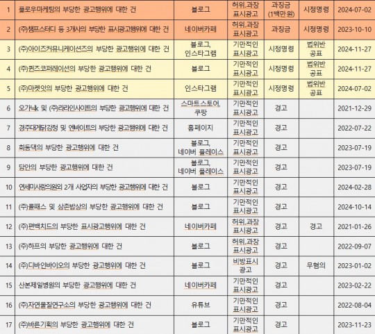 À§¹Ý »ç·Ê¸¦ º¸¸é “¿À´ÃÀÌ ¸¶Áö¸· ÇÒÀΔÀ̶ó´Â ¹®±¸¸¦ ¼ö³â°£ ¹Ýº¹ÇØ ¼ÒºñÀÚ¸¦ ¼ÓÀÎ ±³À°¼ºñ½º ±¤°í, ƯÁ¤ º´¿øÀ̳ª ½Ã¼úÀ» ‘À¯ÀÏ·ÃÖ°í’·Î È«º¸ÇÑ ÀÇ·á ±¤°í, ½ÇÁ¦¿Í ´Ù¸¥ ǰÁú·Á¶°ÇÀ» °Á¶ÇÑ ¼÷¹Ú·¿Ü½Ä¾÷ ±¤°í µî ÇãÀ§·°úÀå ±¤°í°¡ ´ëºÎºÐÀ̾ú´Ù.