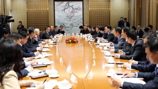 ¼Õ°æ½Ä ȸÀåÀº "¾ç±¹ °íÀ§±Þ Çù·Â ±â¹ÝÀÌ ¸¶·ÃµÈ °¡¿îµ¥, °æÃѵµ °æÁ¦Çù·Â °È¿¡ Èû¾²°Ú´Ù"°í ¸»ÇßÀ¸¸ç, ÀåÈÄÀÌ ÇàÀåÀº "¾ç±¹ °æÁ¦°èÀÇ ¸ñ¼Ò¸®¸¦ µè°í Çù·ÂÀ» ½ÉÈÇϰڴÙ"°í ¹àÇû´Ù.