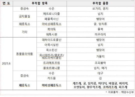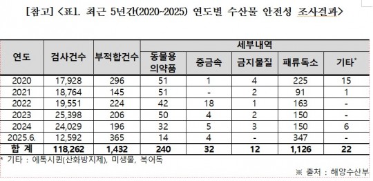 [Âü°í][Ç¥1. ÃÖ±Ù 5³â°£(2020~2025) ¿¬µµº° ¼ö»ê¹° ¾ÈÀü¼º Á¶»ç°á°ú]