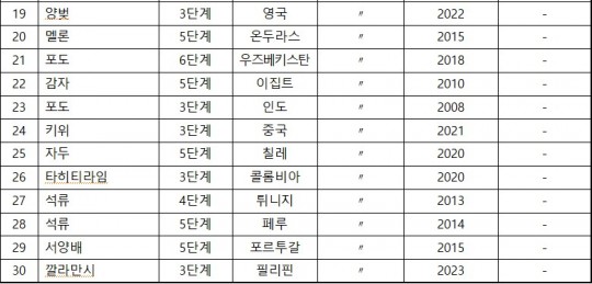 ¼öÀÔ°Ë¿ªÇù»ó °¢ ´Ü°èº° ǰ¸ñ(³ó»ê¹°, 2025³â ÇöÀç)