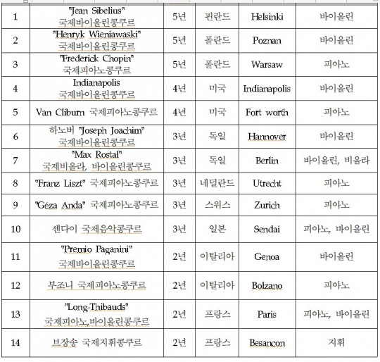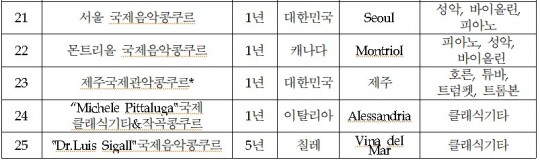 - ±¹Á¦¿¹¼ú°æ¿¬´ëȸ(30°³) : ±¹Á¦À½¾Ç(25°³) + ±¹Á¦¹«¿ë(5°³)