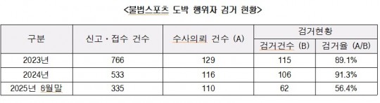 ±¹È¸ ¹®ÈüÀ°°ü±¤À§¿øÈ¸ ¼Ò¼Ó ¹ÎÇü¹è ÀÇ¿ø(´õºÒ¾î¹ÎÁÖ´ç, ±¤ÁÖ ±¤»êÀ»)ÀÌ »çÇà»ê¾÷ÅëÇÕ°¨µ¶À§¿øÈ¸·ÎºÎÅÍ Á¦Ãâ¹ÞÀº ÀÚ·á¿¡ µû¸£¸é, ¿ÃÇØ 8¿ù±îÁö ºÒ¹ý ½ºÆ÷Ã÷µµ¹Ú »çÀÌÆ® ½Å°í °Ç¼ö´Â 27,622°Ç¿¡ ´ÞÇßÀ¸³ª Â÷´Ü ½ÇÀûÀº 3,855°Ç¿¡ ±×ÃÄ Ã³¸®À²Àº 13.95%¿¡ ºÒ°úÇß´Ù.