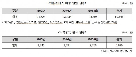 »çÇà»ê¾÷ÅëÇÕ°¨µ¶À§¿øÈ¸ ÀÚ·á¿¡ µû¸£¸é 2023³âºÎÅÍ ÇöÀç±îÁö ÃÖ±Ù 3³â°£ ºÒ¹ýµµ¹ÚÀ¸·Î »ó´ã·Ä¡À¯¼ºñ½º¸¦ ÀÌ¿ëÇÑ ÀοøÀº 60,566¸íÀÌ´Ù.