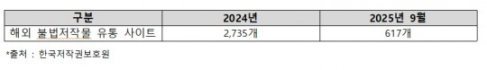 ±¹È¸ ¹®ÈüÀ°°ü±¤À§¿øÈ¸ ¼Ò¼Ó ´õºÒ¾î¹ÎÁÖ´ç Á¶°è¿ø ÀÇ¿ø(Àü³² ¿©¼öÀ»)ÀÌ Çѱ¹ÀúÀ۱Ǻ¸È£¿øÀ¸·ÎºÎÅÍ Á¦Ãâ¹ÞÀº <ºÒ¹ýÀúÀÛ¹° À¯Åë »çÀÌÆ® ÇöȲ °ü·Ã> ÀÚ·á¿¡ ÀÇÇϸé, 2024³â¿¡ ¸ð´ÏÅ͸µ ¹× ½Å°í·Á¢¼öµÇ¾î Á¶Ä¡ÇÑ ÇØ¿Ü ºÒ¹ýÀúÀÛ¹° À¯Åë »çÀÌÆ®°¡ ¹«·Á 2,735°³¿¡ ´ÞÇß´Ù.