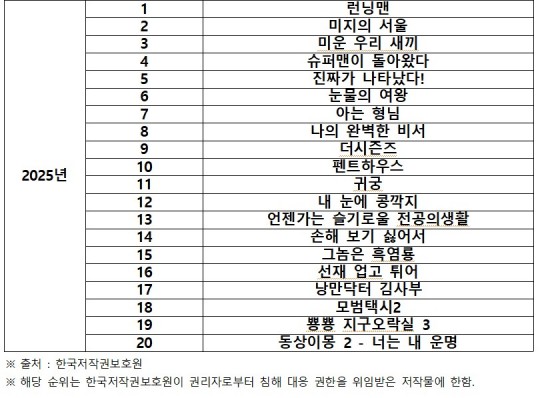 <÷ºÎÀÚ·á – 2024, 2025³â °¡Àå ¸¹Àº Ä§ÇØ¸¦ ¹ÞÀº ¿µ»ó ÇÁ·Î±×·¥ »óÀ§ 20>