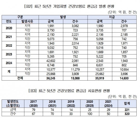 ¹ß»ýÇÑ È¯±Þ±ÝÀÇ ´ëºÎºÐÀº °¡ÀÔÀÚ¿¡°Ô Áö±ÞµÇ°í ÀÖÁö¸¸, ÃÖ±Ù 5³â°£ ÁÖÀο¡°Ô µ¹¾Æ°¡Áö ¸øÇÏ°í ¼Ò¸êµÈ °Ç°º¸Çè·á ȯ±Þ±Ýµµ 221¾ï ¿ø¿¡ À̸£´Â °ÍÀ¸·Î È®ÀεƴÙ.