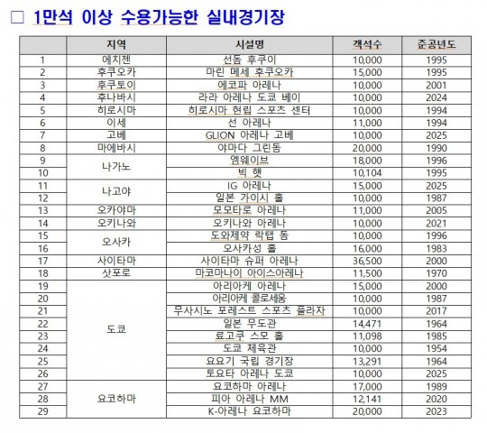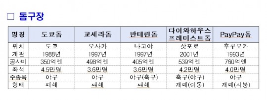 ¹Ý¸é , ÀϺ»Àº ¡ã µµÄìµ¼ ¡ã ±³¼¼¶óµ¼ ¡ã ¹ÝÅ׸°µ¼ µî 5 °÷ÀÇ ´ëÇü µ¼±¸Àå°ú ÇÔ²² , 1 ¸¸¼® ÀÌ»ó ¼ö¿ë°¡´ÉÇÑ ½Ç³»°æ±âÀåÀÌ 29 °÷ , ¹Ì±¹Àº ¡ã AT&T ½ºÅ¸µð¿ò ¡ã NRG ½ºÅ¸µð¿ò ¡ã ±Û·Îºê¶óÀÌÇÁÇÊµå ¡ã ´ÙÀÌŲÆÄÅ© ¡ã ¾Ë¶ó¸ðµ¼ µî 20 ¿© °³ÀÇ Æó¼âÇü µ¼ °æ±âÀåÀ» º¸À¯Çϰí ÀÖ´Ù .