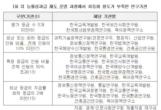 [Ç¥ 2] ÇöÇà ¼º°ú±Þ Á¦µµ µµÀÔ ÀüÈÄ °æÁ¦·Àι®»çȸ¿¬±¸È¸ ¼Ò¼Ó ¿¬±¸±â°ü ´É·ü¼º°ú±Þ ºñ±³