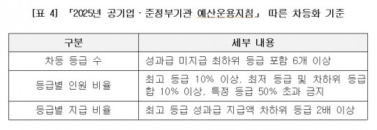 ¶ÇÇÑ Á¦µµ»ó ¼º°ú±ÞÀº µî±Þº° Â÷µî Áö±ÞÀÌ ¿øÄ¢ÀÓ¿¡µµ, 15°³ ±â°ü¿¡¼ ÃÖ°í·ÃÖÀú ÇÏÀ§ µî±Þ °£ Â÷À̰¡ 2¹è ¹Ì¸¸À̾ú°í, 13°³ ±â°ü¿¡¼´Â ƯÁ¤ µî±Þ ÀοøÀÌ 50%¸¦ ³Ñ¾î¼´Â »ç½Ç»ó ‘¼º°ú±Þ ³ª´²¸Ô±â’°¡ ÀÌ·ïÁø °ÍÀ¸·Î È®ÀεƴÙ. ¼º°ú±ÞÀÌ ¿¬±¸¼º°ú¿Í µ¿±â ºÎ¿©°¡ ¾Æ´Ï¶ó ´Ü¼ø »ó¿©±ÝÀ¸·Î º¯ÁúµÈ ¼ÀÀÌ´Ù. :[Ç¥ 3], [Ç¥ 4] ÂüÁ¶