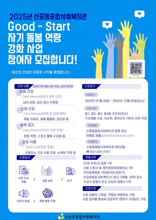»ç¾÷ Âü¿©¸¦ Èñ¸ÁÇÏ´Â ´ë»óÀº ½ÅÁßµ¿Á¾ÇÕ»çȸº¹Áö°ü ȨÆäÀÌÁö °Ô½ÃÆÇÀ» Ȱ¿ëÇϰųª, º¹Áö°ü(´ëÇ¥ÀüÈ 032-325-2161)À¸·Î À¯¼± ¿¬¶ôÇÏ¿© ½Åû ¹× ÀÚ¼¼ÇÑ ³»¿ëÀ» ¾È³»¹ÞÀ» ¼ö ÀÖ´Ù.