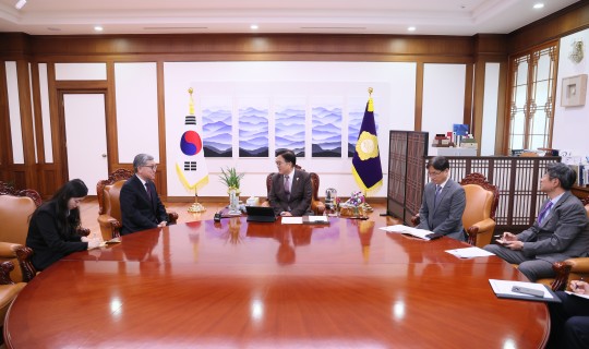 ¡ã¿ì¿ø½Ä ±¹È¸ÀÇÀåÀÌ 3ÀÏ(¿ù) ¿ÀÈÄ ÀÇÀåÁý¹«½Ç¿¡¼ ½ÅÇü½Ä ÁÖ±³È²Ã» ½ÅÀÓ ´ë»ç¿Í