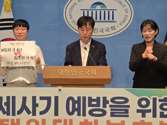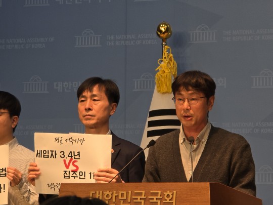 ±âÀÚȸ°ß¿¡´Â ÁÖÅÃÀÔ´ë Â÷º¸È£¹ý °³Á¤¿îµ¿À» ÁÖµµÇؿ ÁÖ°Å´Üüµéµµ Âü¼®ÇÏ¿´´Ù. ±è°¡¿ø ¹Î´ÞÆØÀÌÀ¯´Ï¿Â »ç¹«Ã³ÀåÀº "Àü¼¼»ç±âÇÇÇØÀÚ 75%°¡ 40¼¼ ¹Ì¸¸ û³â" À̶ó°í ¾ð±ÞÇÏ¸é¼ "´ëÇ×·Â ¹ß»ý ½ÃÁ¡ Á¶Á¤. Á¤ÁֱⰣ º¸Àå, ÀÓÂ÷±Ç µî±âȰ¼ºÈ µîÀº û³â¼¼ÀÔÀÚ ÁְžÈÁ¤À» À§ÇÑ ÇʼöÀûÀÎ °³¼±¾È" À̶ó°í ¸»Çß´Ù.