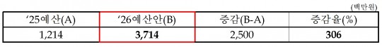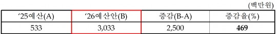 ±¹È¸ ¹®ÈüÀ°°ü±¤À§¿øÈ¸ ±è½Â¼ö ÀÇ¿ø(´ë±¸ ºÏ±¸À», ±¹¹ÎÀÇÈû)ÀÌ ¹®Ã¼ºÎ·ÎºÎÅÍ Á¦Ãâ¹ÞÀº 2026³âµµ ¿¹»ê»ç¾÷ ¼³¸íÀÚ·á¿¡ µû¸£¸é, ´ë±¹¹Î¼ÒÅëȰ¼ºÈÁö¿ø »ç¾÷Àº 75¾ï ¿ø → 139¾ï ¿ø(85.7% Áõ°¡), ¹Ìµð¾îÈ«º¸ »ç¾÷Àº 129¾ï ¿ø → 173¾ï ¿ø(34% Áõ°¡), KTV ¿î¿µ ¿¹»êÀº 219¾ï ¿ø → 293¾ï ¿ø(34.1% Áõ°¡)À¸·Î, È«º¸¿Í °ü·ÃÇÑ ÁÖ¿ä ¿¹»êÀÌ ÀÏÁ¦È÷ ÆøÁõÇÑ °ÍÀ¸·Î È®ÀεƴÙ.