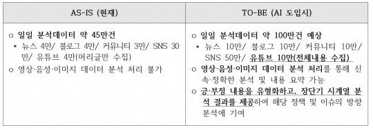 ¹®Ã¼ºÎ´Â ÀÌ »ç¾÷¿¡¼ ÀÏÀÏ ºÐ¼® °Ç¼ö¸¦ 45¸¸ °Ç¿¡¼ 100¸¸ °ÇÀ¸·Î È®´ë, À¯Æ©ºê °Ô½Ã¹° 10¸¸ °ÇÀÇ ‘Àüü ³»¿ë’À» ¼öÁý·ºÐ¼®Çϰڴٴ °èȹÀ» ¼¼¿ü´Ù. ÀÌ´Â ¿©·Ð ¸ð´ÏÅ͸µ ¼öÁØÀ» ³Ñ¾î ±¹¹ÎÀÇ ¿Â¶óÀÎ ¹ß¾ðÀ» ½Ç½Ã°£À¸·Î °¨½Ã·ºÐ¼®ÇÏ´Â ‘Á¤±ÇÇü °¨Âû ½Ã½ºÅÛ’À¸·Î ¾Ç¿ëµÉ ¼ÒÁö°¡ Å©´Ù.