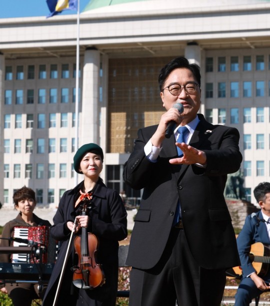 ¿ì¿ø½Ä ±¹È¸ÀÇÀåÀº 14ÀÏ ±¹È¸Áß¾ÓÀܵð±¤Àå¿¡¼ ¿¸° ±¹È¸ °³¹æ Á¤¿ÀÀÇ ÄܼƮ '°¡À»ÀÌ ÇǾú³×'¿¡ Âü¼®Çß´Ù. ±¹È¸¿¡¼ óÀ½ ¿¸° À̹ø ÄܼƮ¿¡´Â µå¶ó¸¶ <±¸¸£¹Ì ±×¸° ´Þºû> µî ´Ù¼öÀÇ OST¸¦ ÀÛ°îÇÑ 'µÎ¹øÂ°´Þ'ÀÌ ÇÔ²²ÇØ °ø¿¬À» ÆîÃÆ´Ù. ¿ì ÀÇÀåÀº ÀÌ ÀÚ¸®¿¡¼ "Áö³ ±¤º¹Àý Àü¾ßÁ¦, µ¾ÀÚ¸® ¿µÈÁ¦, ÀÔ¹ý¹Ú¶÷ȸó·³ ±¹È¸¸¦ °³¹æÇØ ±¹¹Î°ú ÇÔ²²ÇÏ´Â Çà»ç¸¦ ¸¸µé¾î³ª°¡°í ÀÖ´Ù"¸ç "¾ÕÀ¸·Îµµ ±¹È¸¿Í ¹ÎÁÖÁÖÀǸ¦ ÁöÄÑÁØ ±¹¹Îµé²² ¿¸° ±¹È¸°¡ µÉ ¼ö ÀÖµµ·Ï ³ë·ÂÇϰڴÙ"°í ¹àÇû´Ù