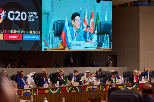 ÀÌÀç¸í ´ëÅë·ÉÀÌ 22ÀÏ(ÇöÁö½Ã°£) ³²¾ÆÇÁ¸®Ä«°øÈ±¹ ³ª½º·º ¿¢½ºÆ÷¼¾ÅÍ¿¡¼ ¿¸° ÁÖ¿ä 20°³±¹(G20) Á¤»óȸÀÇ Á¦1¼¼¼Ç¿¡¼ ¹ß¾ðÇϰí ÀÖ´Ù. 2025.11.22 [°øµ¿ÃëÀç Á¦°ø](=»çÁøÃâó=¿¬ÇÕ´º½º)
