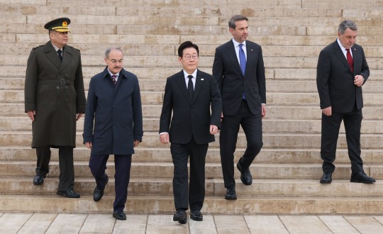 Æ¢¸£Å°¿¹¸¦ ±¹ºó ¹æ¹® ÁßÀÎ ÀÌÀç¸í ´ëÅë·ÉÀÌ 24ÀÏ(ÇöÁö½Ã°£) ¾ÓÄ«¶ó¿¡ À§Ä¡ÇÑ Æ¢¸£Å°¿¹ÀÇ ÃÊ´ë ´ëÅë·É '¹«½ºÅ¸ÆÄ Äɸ» ¾ÆÅ¸Æ¢¸£Å©'ÀÇ ¹¦¼Ò¿¡¼ °ü°èÀÚµé°ú ±â³äÃÔ¿µ ÈÄ À̵¿Çϰí ÀÖ´Ù. ¿ÞÂʺÎÅÍ ¾ÆÀÌÇÑ Ä®·»µ¥¸£ Áß¾Ó»ç·É°ü, ´©¸£»ì Â÷Å©¸£¿À¿ï·ç ¾ÓÄ«¶ó ºÎÁÖÁö»ç, ÀÌÀç¸í ´ëÅë·É, ¾ËÆÄ½½¶õ ¹ÙÀ̶ôŸ¸£ Æ¢¸£Å°¿¹ ¿¡³ÊÁöõ¿¬ÀÚ¿øºÎ Àå°ü, ÆÄ·è ÄìÀÏ·ò¿À¿ï·ç ¾ÓÄ«¶ó ºÎ½ÃÀå. 2025.11.24. (¾ÓÄ«¶ó=»çÁøÃâó=¿¬ÇÕ´º½º)