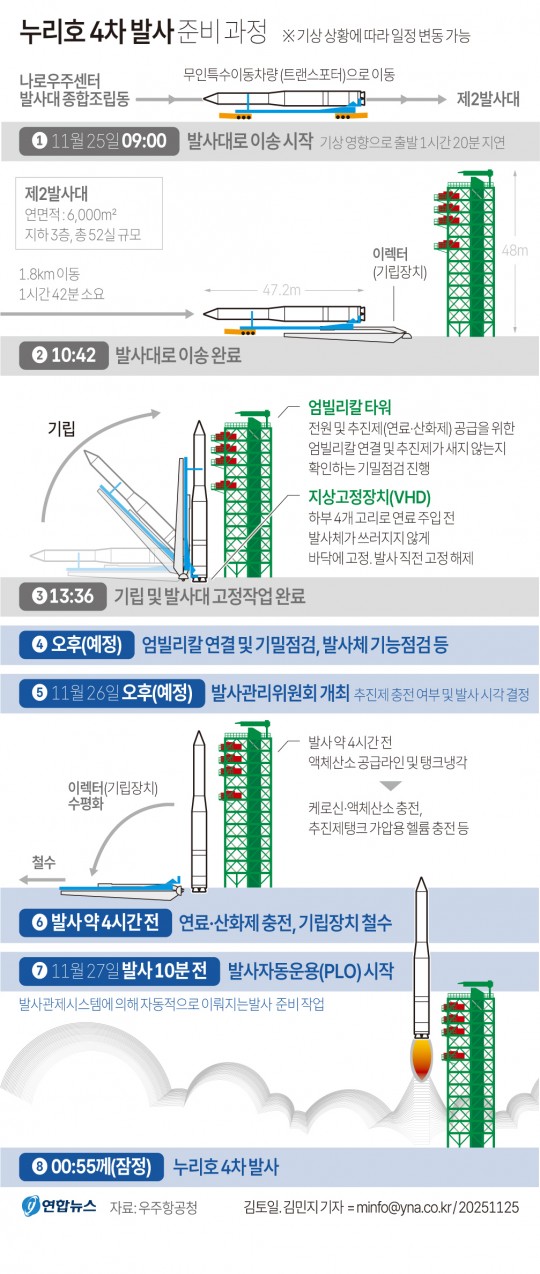 25ÀÏ Àü³² °íÈï ³ª·Î¿ìÁÖ¼¾ÅÍ¿¡¼ ´©¸®È£ 4Â÷ ¹ß»ç¸¦ À§ÇÑ ÀÌ¼Û ¹× ±â¸³ÀÛ¾÷ÀÌ ÁøÇàµÇ°í ÀÖ´Ù. 2025.11.25 [Çѱ¹Ç×°ø¿ìÁÖ¿¬±¸¿ø Á¦°ø(»çÁøÃâó=¿¬ÇÕ´º½º)