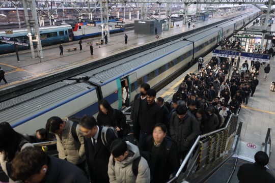 11ÀÏ ¼¿ï¿ª Ç÷§Æû¿¡¼ ½Â°´µéÀÌ ¿À°¡°í ÀÖ´Ù. Çѱ¹Ã¶µµ°ø»ç(ÄÚ·¹ÀÏ)´Â À̳¯ Àü±¹Ã¶µµ³ëµ¿Á¶ÇÕÀÌ ÆÄ¾÷À» À¯º¸ÇÔ¿¡ µû¶ó ¸ðµç ¿Â÷¸¦ Á¤»ó ¿îÇàÇÑ´Ù°í ¹àÇû´Ù.(»çÁøÃâó=¿¬ÇÕ´º½º)