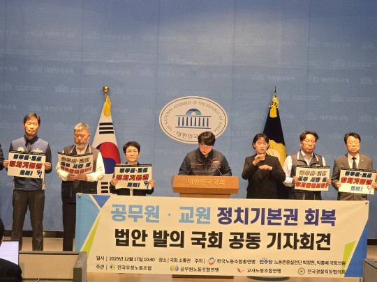 Çѱ¹³ëµ¿Á¶ÇÕÃÑ¿¬¸Í(Çѱ¹³ëÃÑ)°ú ´õºÒ¾î¹ÎÁÖ´ç ³ëµ¿Á¸Áß½Çõ´ÜÀº 12¿ù 17ÀÏ ±¹È¸ ¼ÒÅë°ü¿¡¼ °ø¹«¿ø ¹× ±³¿øÀÇ Á¤Ä¡±âº»±Ç ȸº¹À» À§ÇÑ 6°³ ÆÐŰÁö ¹ý·ü °³Á¤¾È °øµ¿ ¹ßÀÇ ±âÀÚȸ°ßÀ» °³ÃÖÇß´Ù.
