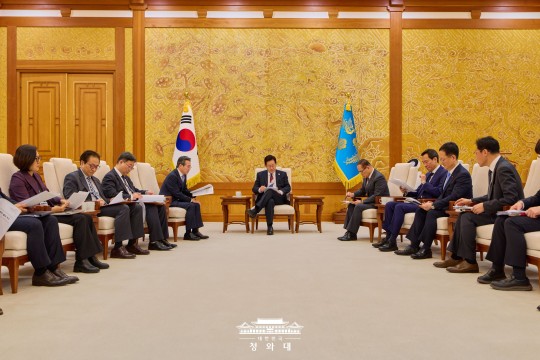 ÀÌ ´ëÅë·ÉÀº û¿Í´ë º»°ü¿¡¼ ¾ÆÄ§ Â÷´ã ȸÀǸ¦ ÁÖÀçÇϸç Âü¸ðµé·ÎºÎÅÍ ±¹Á¤ Çö¾ÈÀ» º¸°í¹Þ¾Ò´Ù.