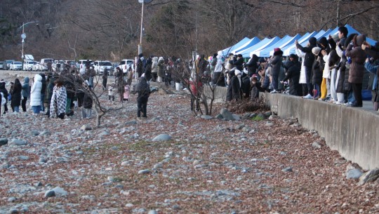 ÃßÀ§ ¼Ó¿¡¼ ¶±±¹À» ¹è½Ä¹ÞÀ¸·Á´Â ÁÙÀÌ Àå»çÁøÀ» ÀÌ·ç¾úÀ¸¸ç, ¿µÇÏ 5µµÀÇ ÃßÀ§¿¡ ¸öÀ» ¶³´ø °ü±¤°´µéÀº ±èÀÌ ¸ð¶ô¸ð¶ô ³ª´Â ¶±±¹ ÇÑ ±×¸©¿¡ ¿¬½Å °¨»ç Àλ縦 ÀüÇß´Ù.