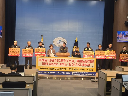 Çѱ¹³ëÃÑ Àü±¹¿¬´ëÅëÇհǼ³³ëÁ¶ Çö´ë±â¾ÆÂ÷ºÎǰ¿î¼ÛÁöºÎ´Â 6ÀÏ ±¹È¸¿¡¼ À̼öÁø ±¹È¸ÀÇ¿ø(¼º³² Áß¿ø)°ú ÇÔ²² ±âÀÚȸ°ßÀ» ¿°í Çö´ë·±â¾ÆÂ÷ ºÎǰ ¿î¼Û °úÁ¤¿¡¼ ¹ß»ýÇÏ´Â '¶óÀÎ Áß´Ü Å¬·¹ÀÓ'ÀÇ ºñÀΰ£ÀûÀÎ ½ÇŸ¦ Æø·ÎÇß´Ù.