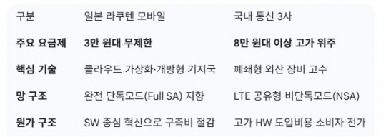 ÀϺ» ¶óÄíÅÙ ¸ð¹ÙÀÏ vs ±¹³» Åë½Å 3»ç ºñ±³