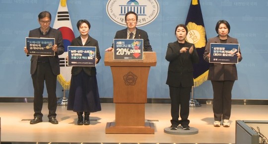 ¹Ú ÀÇ¿øÀº 22ÀÏ ¿ÀÀü ±¹È¸ ¼ÒÅë°ü¿¡¼ ¼ÒºñÀÚ ´Üü ¹× À¯Åë Àü¹®°¡µé°ú ÇÔ²² ±âÀÚȸ°ßÀ» ¿°í, º¹ÀâÇÑ À¯Åë ±¸Á¶¸¦ Àü¸é °³ÆíÇØ ½Ã¹ÎµéÀÇ ¸Ô°Å¸® ºÎ´ãÀ» ´ú¾îÁÖ´Â '¼¿ï À¯Åë ´ë°³Çõ' °ø¾àÀ» ¹ßÇ¥Çß´Ù.