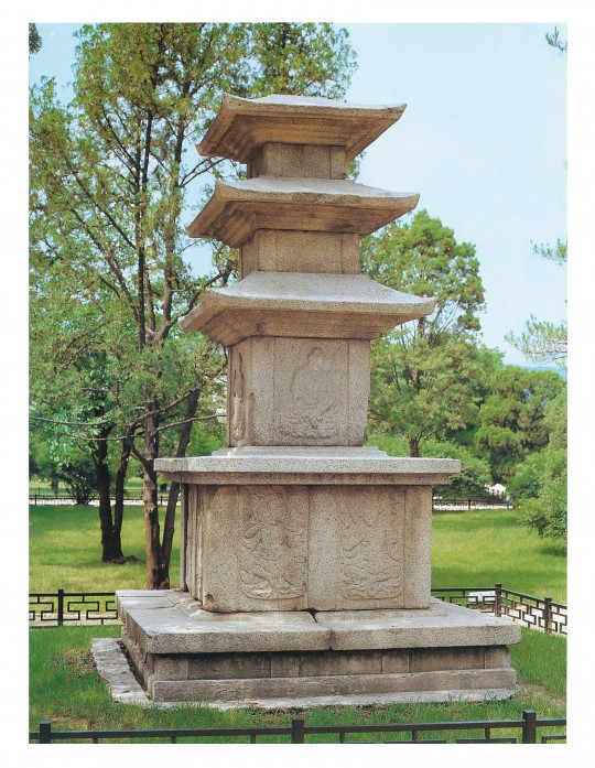 »êû ¹üÇи® »ïÃþ¼®Å¾Àº ÅëÀϽŶó½Ã´ëÀÎ 9¼¼±â ¹«·Æ¿¡ Á¦ÀÛµÈ ÈÄ Á¶¼±½Ã´ë±îÁö »çÂû°ú ÇÔ²² °æÈ£°ÀÌ ¹Ù¶óº¸ÀÌ´Â µÐö»ê ÀÚ¶ô¿¡ ÀÚ¸® Àâ°í ÀÖ¾ú´Ù. 1941³â ÀýÀº ¾ø¾îÁö°í ¼®Å¾Àº Çã¹°¾îÁ® ÀÖ´ø °ÍÀ» º» ÀϺ»ÀÎ °ñµ¿Ç°»óÀÌ ¸Å¼öÇÏ¿© »êûÀ» ¶°³ª°Ô µÇ¾ú´Ù. ¼®Å¾Àº ´ë±¸¿¡ ÀÖ´ø °øÀå °øÅÍ¿¡ ÇØÃ¼µÇ¾î º¸°üµÇ¾î ÀÖ¾ú´Âµ¥, Á¶¼±Ãѵ¶ºÎ ¹Ú¹°°üÀÌ ½ÇÅÂÁ¶»ç¸¦ ½Ç½ÃÇÏ¿´°í, 1942³â Á¶¼±Ãѵ¶ºÎ ¹Ú¹°°üÀ¸·Î ¿Å°ÜÁ³´Ù. ÀÌÈÄ »êû ¹üÇи® »ïÃþ¼®Å¾Àº 1946³â 5¿ù 27ÀÏ ¹Ì±º °øº´´ëÀÇ µµ¿òÀ» ¹Þ¾Æ °æº¹±Ã ¾È¿¡ ¼¼¿öÁ³À¸³ª, 1994³â °æº¹±Ã Á¤ºñ»ç¾÷ÀÇ ÀÏȯÀ¸·Î ´Ù½Ã ÇØÃ¼µÇ¾î 23³â°£ ±¹¸³Áß¾Ó¹Ú¹°°ü ¼öÀå°í¿¡ º¸°üµÇ¾î ¿Ô´Ù.