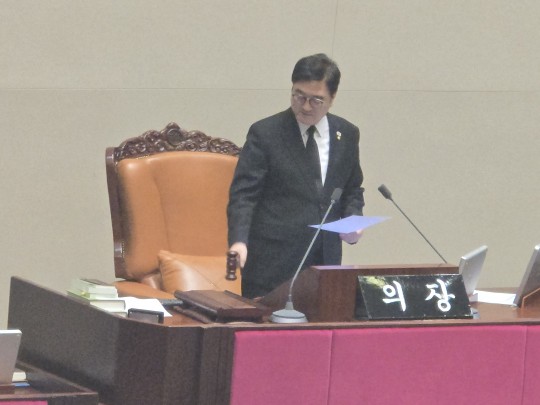 31ÀÏ ±¹È¸ º»È¸ÀÇ¿¡¼ ¹«Á¦ÇÑÅä·Ð ÁøÇà ¹æ½Ä µîÀ» ´ãÀº '±¹È¸¹ý ÀϺΰ³Á¤¹ý·ü¾È'À» Æ÷ÇÔÇÑ 14°ÇÀÇ ÁÖ¿ä ¹ý¾ÈÀÌ Ã³¸®µÆ´Ù. ¿ì¿ø½Ä ±¹È¸ÀÇÀåÀº º»È¸ÀÇ¿¡¼ ¹ý¾È ó¸®¿Í °ü·ÃÇØ “ÀÇÀå´ÜÀÌ ¾Æ´Ñ »ç¶÷¿¡°Ô º»È¸ÀÇ »çȸ¸¦ À̾çÇÏ´Â ¹ý¾ÈÀ» Åë°ú½Ãų ¼ö¹Û¿¡ ¾ø´Â »óȲ¿¡ ´ëÇØ ÀÇÀåÀ¸·Î¼ ¸Å¿ì ¾ÈŸ±õ°í À¯°¨½º·´°Ô »ý°¢ÇÑ´Ù”°í ¹àÇû´Ù.