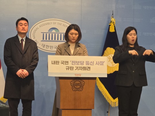 (ºÒž´º½º=¼ÛÇàÀÓ±âÀÚ) Áøº¸´ç ¼Õ¼Ö ±¹È¸ÀÇ¿ø°ú È«¼º±Ô °æ±âµµÁö»ç Èĺ¸ µîÀº 6ÀÏ ¿ÀÀü ±¹È¸ ¼ÒÅë°ü¿¡¼ ±âÀÚȸ°ßÀ» ¿°í, °æÂû µî ¼ö»ç±â°üÀÌ Áøº¸´ç ´ç¿øµéÀ» ´ë»óÀ¸·Î ´ë±Ô¸ð Åë½ÅÀÌ¿ëÀÚÁ¤º¸¸¦ Á¶È¸ÇÑ °ÍÀ» ‘Á¤Ä¡»çÂû’·Î ±ÔÁ¤ÇÏ¸ç °·ÂÈ÷ ±ÔźÇß´Ù.