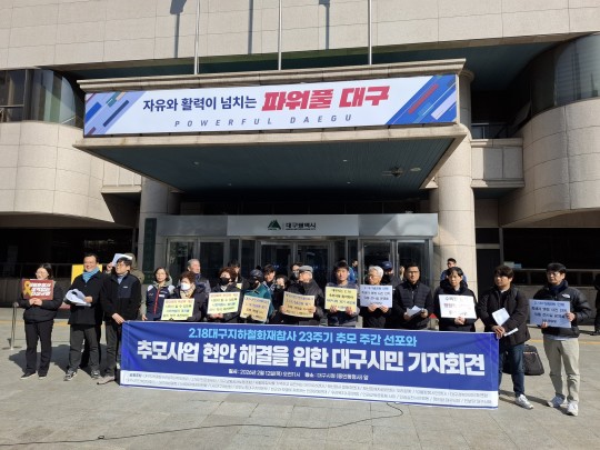 ¿¬ÇÕ´º½º¿¡ µû¸£¸é ´ë±¸ÁöÇÏöÂü»çÈñ»ýÀÚ´ëÃ¥À§¿øÈ¸ µî Áö¿ª 19°³ ½Ã¹Î»çȸ´Üü´Â 12ÀÏ ´ë±¸½Ãû ¾Õ¿¡¼ ±âÀÚȸ°ßÀ» ¿°í ½Ã¹Î¾ÈÀüÅ׸¶ÆÄÅ©¿¡ '2·18±â³ä°ø¿ø' º´±â¸¦ ¿ä±¸Çß´Ù.