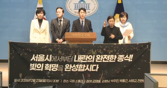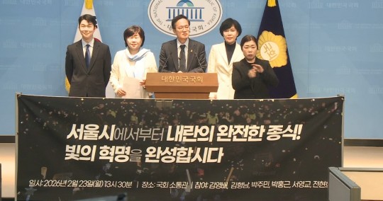 ±è¿µ¹è, ±èÇü³², ¹ÚÁÖ¹Î, ¹ÚÈ«±Ù, ¼¿µ±³, ÀüÇöÈñ ÀÇ¿ø(°¡³ª´Ù¼ø) µî ¹ÎÁÖ´ç ¼¿ï½ÃÀå È帱º 6ÀÎÀº 23ÀÏ ¿ÀÈÄ ±¹È¸ ¼ÒÅë°ü¿¡¼ ±âÀÚȸ°ßÀ» ¿°í “¼¿ï¿¡¼ºÎÅÍ ³»¶õÀ» ¿ÏÀüÈ÷ Á¾½ÄÇÏ°í ºûÀÇ Çõ¸íÀ» ¿Ï¼öÇϰڴٔ°í °·ÂÈ÷ ¼±¾ðÇß´Ù.