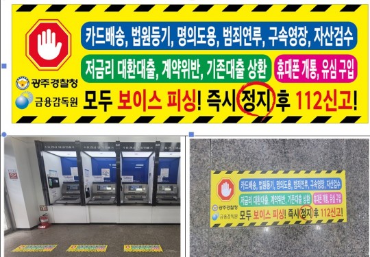(ºÒž´º½º=¼ÛÇàÀÓ±âÀÚ) ±¤ÁÖ°æÂûûÀº ±ÝÀ¶°¨µ¶¿ø ±¤ÁÖÀü³²Áö¿ø°ú ÇÔ²² º¸À̽ºÇÇ½Ì ¹üÁ˷κÎÅÍ ½Ã¹ÎµéÀÇ ¼ÒÁßÇÑ Àç»êÀ» º¸È£Çϱâ À§ÇØ °ü³» ±ÝÀ¶±â°ü ATM ¾Õ ¹Ù´Ú¿¡ ¡¸º¸À̽ºÇÇ½Ì Á¤Áö¼±¡¹À» ºÎÂøÇß´Ù.