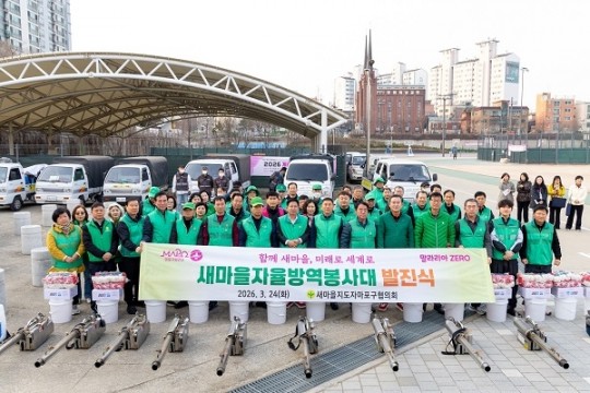 À̹ø ¹ßÁø½ÄÀº »õ¸¶À»ÁöµµÀÚ¸¶Æ÷±¸ÇùÀÇȸ ÁÖ°üÀ¸·Î ¿·ÈÀ¸¸ç, ¼¿ïƯº°½Ã¸¶Æ÷±¸»õ¸¶À»È¸Àå°ú »õ¸¶À»ÁöµµÀÚ¸¶Æ÷±¸ÇùÀÇȸÀå, °¢ µ¿ ¹æ¿ª´ëÀå µî 50¿© ¸íÀÌ Âü¼®Çß´Ù.