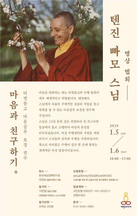 ¼¼°èÀûÀÎ ¿©¼º ¸í»ó°¡·Î »ÌÈ÷°í ÀÖ´Â ÅÙÁøºü¸ð ½º´ÔÀº 12³â µ¿¾È ±íÀº È÷¸»¶ó¾ß »ê µ¿±¼¿¡¼ Ȧ·Î °íÇàÇÏ¸ç ¸¶À½ÀÇ º»¼ºÀ» Å͵æÇßÀ¸¸ç ¿©¼º ¼öÇ༾ÅÍ¿Í »ç¿øÀ» ¼¼¿ö ºñ±¸´Ï ½º´ÔµéÀÇ °øºÎ¿Í ¼öÇàÀ» Áö¿øÇϰí ÀÖ´Ù. ½º´ÔÀº ¸í»ó¿¡ ´ëÇØ “¸¶À½À» º¯ÈÇÏ´Â µ¥´Â ƼºªºÒ±³ÀÇ ¼öÇà¹æÆíÀÌ ¸Å¿ì ü°èÀûÀ̰í Ź¿ùÇÏ´Ù”°í ¼Ò°³ÇÑ´Ù.