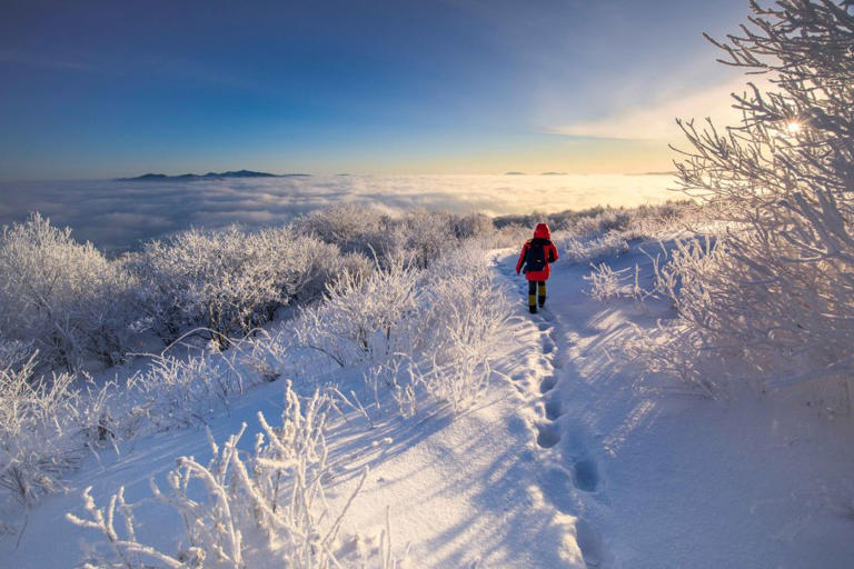 태백산은 강원도 산지 중에서도 기온이 가장 먼저 떨어지는 지역 중 하나라, 해마다 상고대 시즌을 제일 먼저 여는 산으로 알려져 있다. 해발 1,560m의 천제단 주변은 겨울이면 마치 얼음 왕국처럼 변모하며, 강한 바람과 습기가 결합할 때 가장 복잡하고 정교한 형태의 상고대가 만들어진다.
