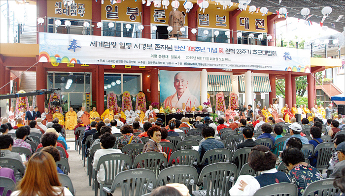 ºÎȸÀå µµ½É ½º´ÔÀÇ ¹ß¿ø¹®°ú ¹é¿ëÈ ±³´Ü¿ëȺұ³ ÀÌ»çÀåÀÇ ±â¿ø¹®ÀÌ ³¶µ¶µÇ°í ÇåÈ¿Í ÇåÇâÀÌ ÁøÇàµÆ´Ù. À켯 ½º´ÔÀÇ »ýÀü À°¼º ¹ý¾î¸¦ ¸¶À½¿¡ »õ±â°í ºÎȸÀå ¹«°¢ ½º´ÔÀÇ ÇàÀå¼Ò°³°¡ À̾îÁ³´Ù. ¹®µµÁß¾Óȸ ¹®ÀåÀ̸ç ÀϺػç ȸÁÖ Çý¿î ½º´ÔÀº “¿©±â ºÀȲ´ë ÀϺػç´Â À켯 ½º´ÔÀÇ ¼ºÁö·Î À۳⠰³°üÇÑ À¯¹°°üÀÎ ¹ýº¸´ëÀü¿¡´Â ¸¹Àº ºÒÀÚµéÀÇ ¹ß°ÉÀ½ÀÌ ²÷ÀÌÁö ¾Ê°í ÀÖ´Ù. Å«½º´Ô Á¦Àڷμ ±àÁö¸¦ °®°í µµ¸®¸¦ ´ÙÇØ °¡°Ú´Ù.”°í Àλ縻À» ÀüÇß´Ù. ¹®µµÁß¾Óȸ ȸÀå õ° ½º´ÔÀº ºÀÇà»ç¿¡¼ “ź½ÅÀϰú Ã߸ðÀç Çà»ç¸¸ÅÀº ÀϺػ翡¼ ºÀÇàÇϱâ·Î ÇÑ ±× µÎ¹øÂ° Çà»çÀÌ´Ù. Å« ½º´ÔÀ» ±â¸®´Â ¹ýȸ¿¡ ¿ø±ÙÀ» ¶°³ª ±â²¨ÀÌ Âü¼®ÇØ ÁֽЏðµç ºÐµé²² °¨»ç µå¸°´Ù.”°í °í¸¶À½À» ÀüÇß´Ù.